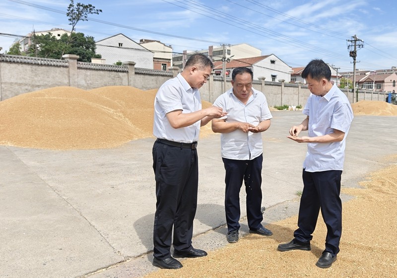 集團領(lǐng)導(dǎo)一行先后到達農(nóng)業(yè)一、二、三分公司部分自種地和曬場,認真察看麥粒飽滿度,詳細詢問收割進度、產(chǎn)量、入庫、防火等工作情況,農(nóng)業(yè)公司負責人現(xiàn)場做了詳細匯報。